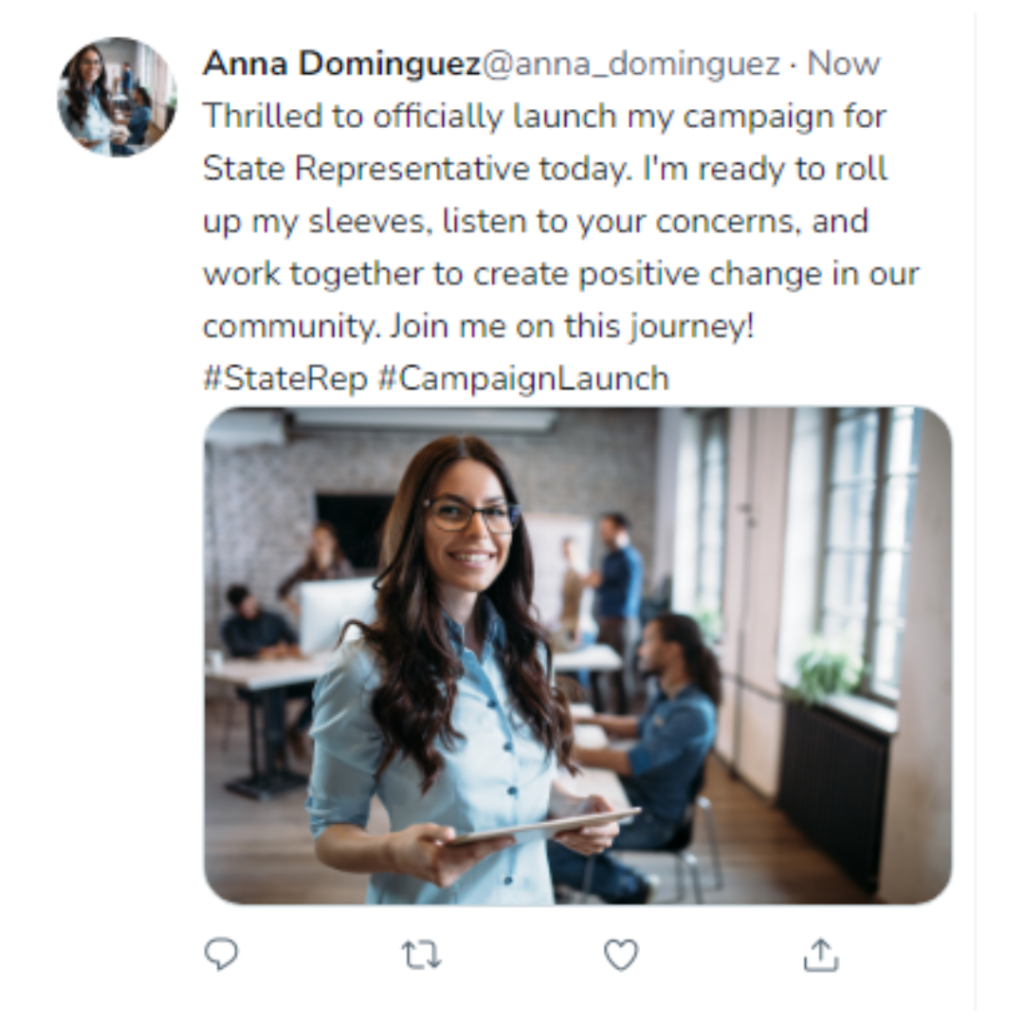 Anna Dominguez is a dynamic and passionate leader vying to represent her community in the upcoming political elections. Born and raised in the heart of her constituency, Anna has always been deeply connected to the needs and aspirations of the people around her.